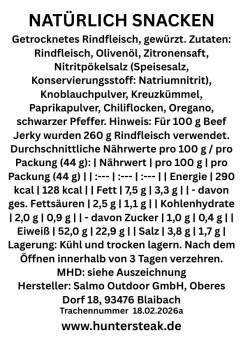 Inhalt: 44g feinstes Beef Jerky.