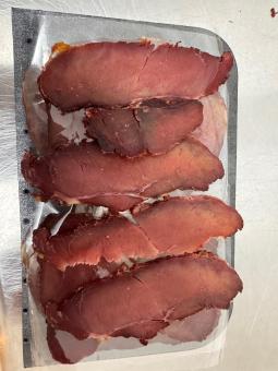 Dieser Schinken basiert auf dem besten Stück: dem Wildschwein Filet und Rücken. Das Fleisch wird kalt geräuchert und dann hauchdünn geschnitten, um das volle, würzige Aroma optimal zu entfalten.